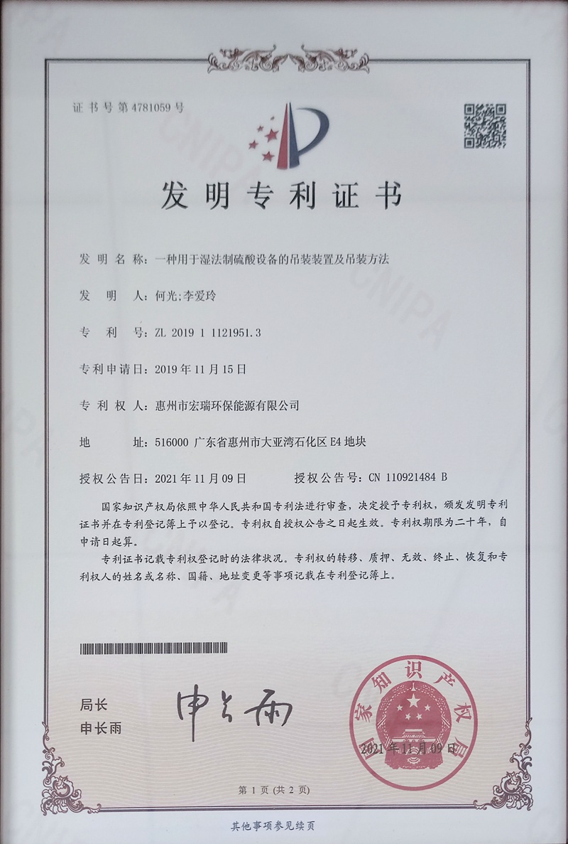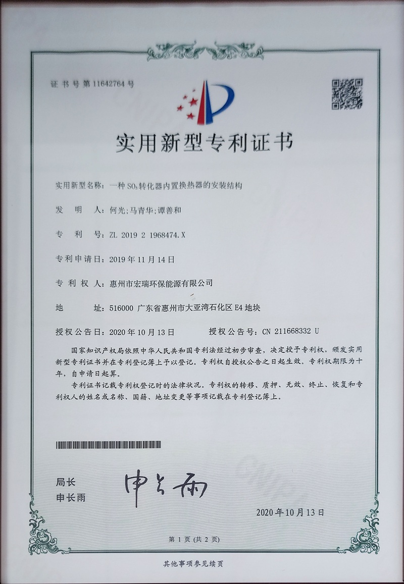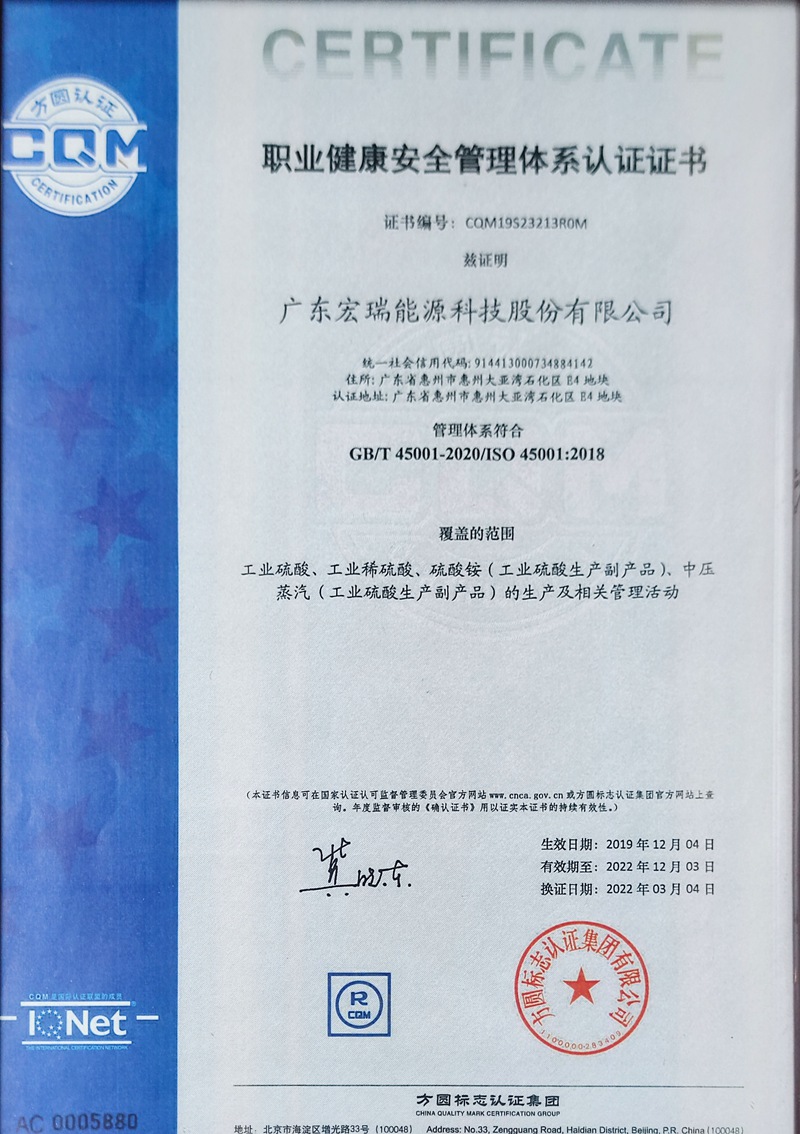 宏瑞股份建成了目前世界上已投產(chǎn)的規(guī)模最大的濕法制酸裝置,目前產(chǎn)能為硫酸約33萬噸/年。該裝置采取“隔墻供應(yīng)”的合作模式,以中海油惠州石化大亞灣煉油廠產(chǎn)生的酸性原料氣為原材料生產(chǎn)硫酸(含蓄電池硫酸、試劑硫酸、工業(yè)硫酸等),通過一系列放熱反應(yīng)所產(chǎn)生的蒸汽作為石油煉化生產(chǎn)期間的重要能源供給,通過管道輸送給中海油惠州石化,實(shí)現(xiàn)了從煉油所產(chǎn)生含硫的酸性原料氣直接轉(zhuǎn)化為綠色低碳環(huán)保能源(中壓蒸汽),達(dá)到資源的綜合利用目標(biāo),大幅度減少二氧化碳排放總量(減少二氧化碳排放約26.52萬噸/年),同時(shí)取得了良好的經(jīng)濟(jì)和社會(huì)效益。