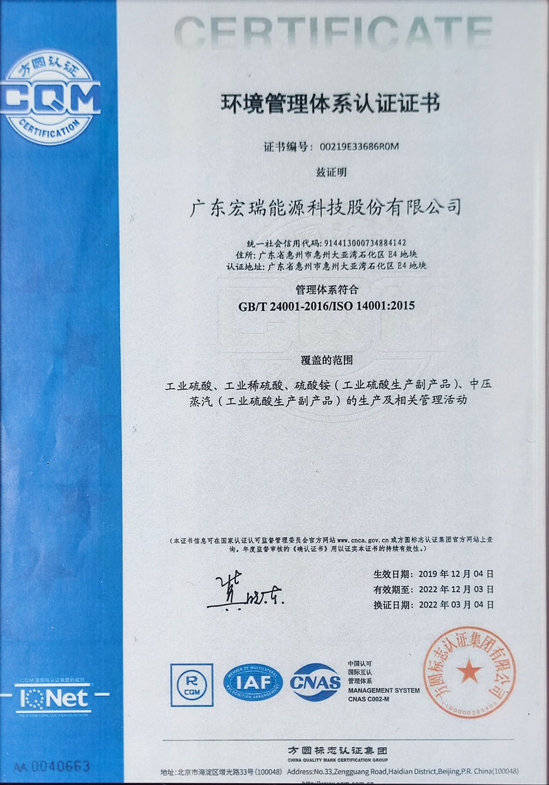 廣東宏瑞能源科技股份有限公司(簡稱“宏瑞股份”、“公司”)成立于2013年7月,坐落于大亞灣石化區(qū),公司及其下屬子公司目前在職人數(shù)約300人。公司系一家以硫化工為業(yè)務(wù)主線,以循環(huán)經(jīng)濟(jì)和園區(qū)經(jīng)濟(jì)為業(yè)務(wù)特色的現(xiàn)代化化工企業(yè),公司始終堅(jiān)持以技術(shù)進(jìn)步推動(dòng)轉(zhuǎn)型升級(jí),以綠色化學(xué)實(shí)現(xiàn)可持續(xù)發(fā)展,主營業(yè)務(wù)由基礎(chǔ)化工逐步向覆蓋精細(xì)化工與新材料進(jìn)行拓展。
